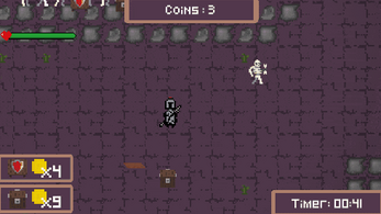 A warrior is trying to face his way through a haunted dungeon.